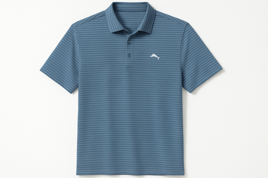 Camiseta Polo Tommy Bahama 🐬 Performance color celeste de rayas en blanco Talla M Entalle Regular