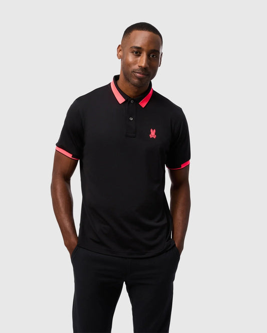 Camiseta Polo Psycho Bunny 🐰 Micro mesh en color negro y rosado con diseño de cuello Talla M Entalle Regular