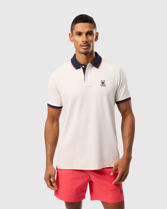 Camiseta Polo Psycho Bunny 🐰 Pique en color crema y diseño de cuello Talla M Entalle Regular