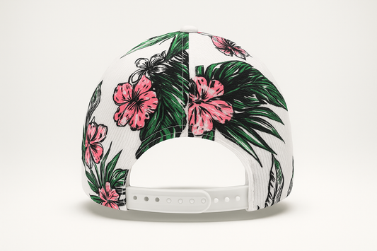 Gorra Under Armour 🏋🏽 color blanco con diseño floral y logotipo en color negro