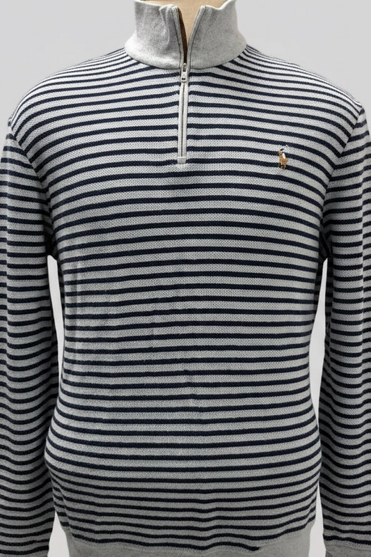 Sueter Jersey Polo Ralph Lauren 🏇🏼 color gris claro con rayas negras Talla XL