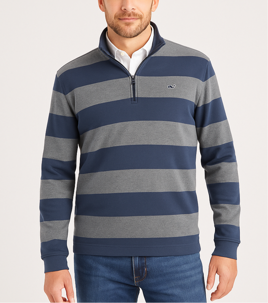 Sueter Jersey Vineyard Vines 🐳 Performance color gris con zipper rojo Talla S