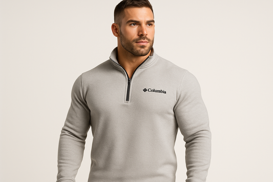 Sueter Jersey Columbia 🔷 color crema y logo en color negro Talla S