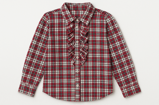 Camisa de niña Polo Ralph Lauren🏇 de cuadros color rojo verde y blanco con detalle de bolados al frente Talla 10