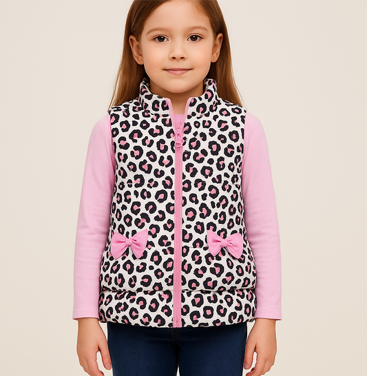 Chaleco acolchado (puffer) de niña Kids Headquarters🌆 Con diseño de animal print blanco rosado y negro Talla 6