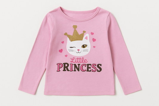 Camiseta de niña Kids Headquarters🌆 Color rosado con diseño de gatita Talla 6