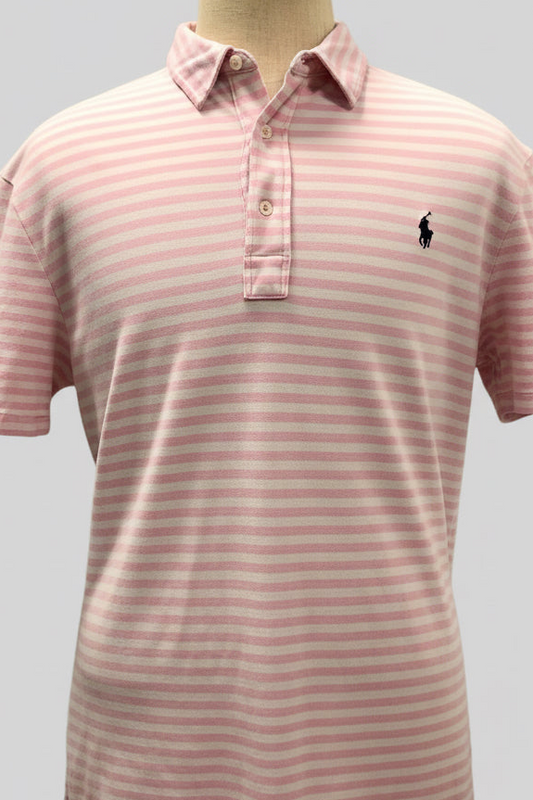 Camiseta Polo Ralph Lauren 🏇🏼 Featherweight Mesh De rayas en color rosado y blanco Talla XL Entalle Regular