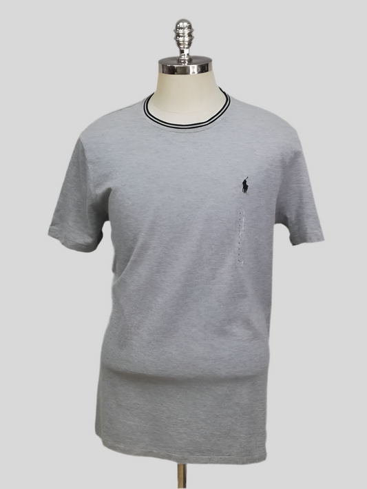 Camiseta cuello redondo Polo Ralph Lauren 🏇🏼 color gris con diseño en cuello en color negro Talla L (ver descripción)
