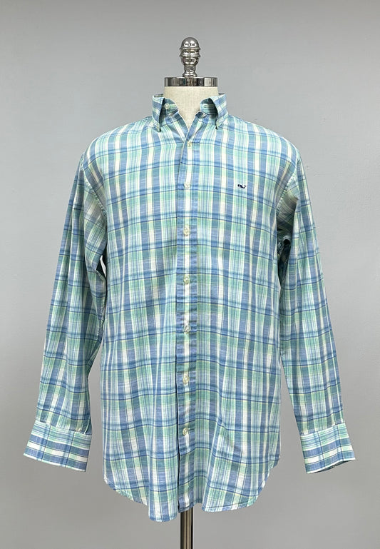 Camisa de botones Vineyard Vines 🐳 color blanco de cuadros en color azul, verde y amarillo Talla L Entalle Regular (ver descripción)