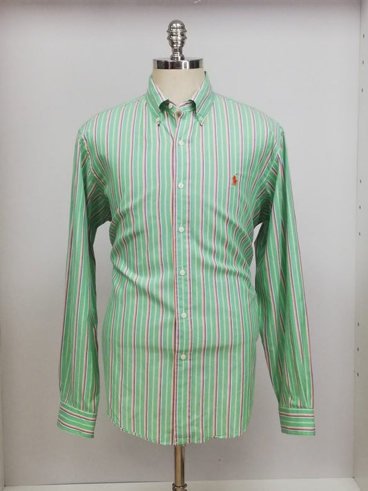 Camisa Polo Ralph Lauren 🏇🏼 color verde con patron de rayas en color naranja, azul y blanco Talla XL Entalle Regular (ver descripción)