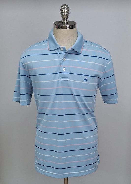 Camiseta Polo Brooks Brothers 🐑 Tela performance color celeste con rayas en color azul, blanco y rosado Talla L Entalle Regular (ver descripción)
