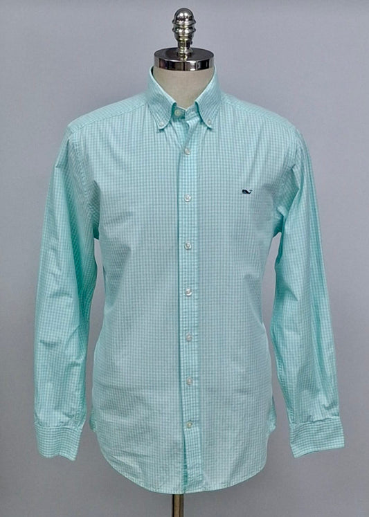 Camisa de botones Vineyard Vines 🐳 con patrón de cuadros gingham en color turquesa claro y blanco Talla M Entalle Slim Fit (ver descripción)