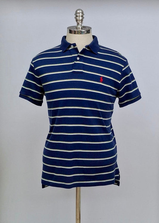 Camiseta Polo Ralph Lauren 🏇🏼 con patron de rayas en color azul navy y blanco Talla M Entalle Custom Fit (ver descripción)
