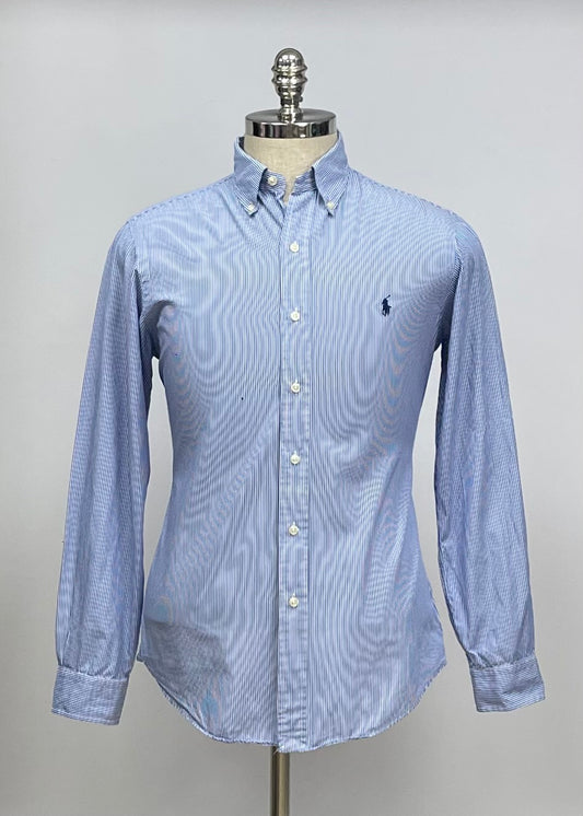 Camisa Polo Ralph Lauren 🏇🏼 con patron de finas rayas azul y blanco Talla S Entalle Regular (ver descripción)