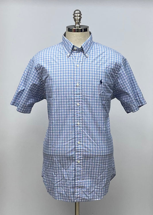 Camisa Polo Ralph Lauren 🏇🏼 celeste de cuadros en color rosado y blanco Talla L Entalle Regular (ver descripción)