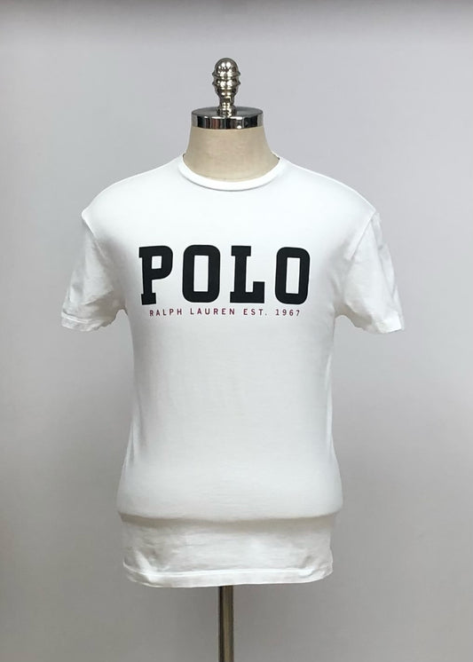 Camiseta cuello redondo Polo Ralph Lauren 🏇🏼 color blanco y logo en letras en azul navy Talla S (ver descripción)