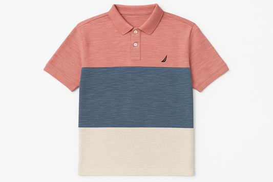 Camiseta Polo Nautica ⚓️ con patrón de franjas en color rosado, gris y crema Talla XL Entalle Regular