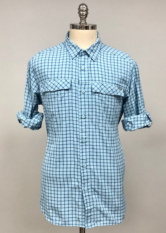 Camisa de botones Columbia 🔹 con patrón de cuadros en color celeste y azul con Omni-Shade Talla L (ver descripción)