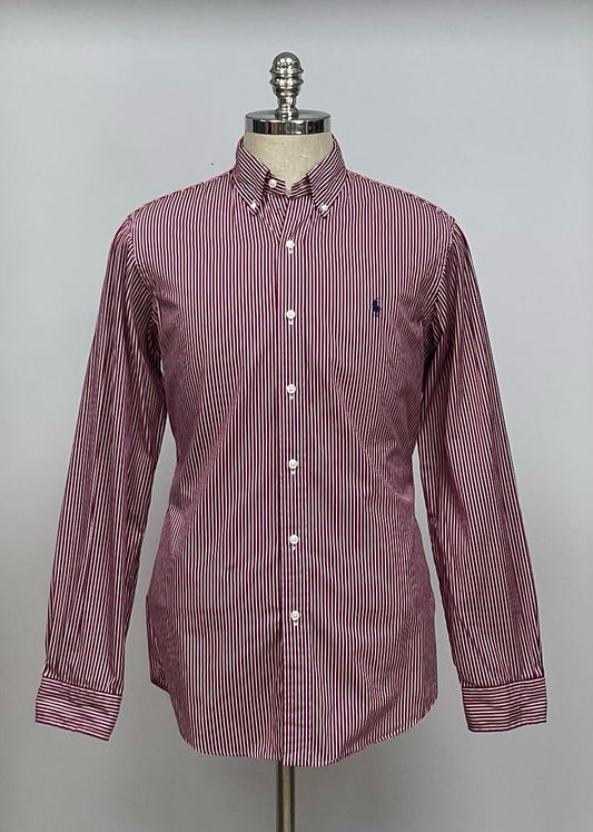Camisa Polo Ralph Lauren 🏇🏼 con patron de rayas en color rojo oscuro y blanco Talla M Entalle Regular (ver descripción)