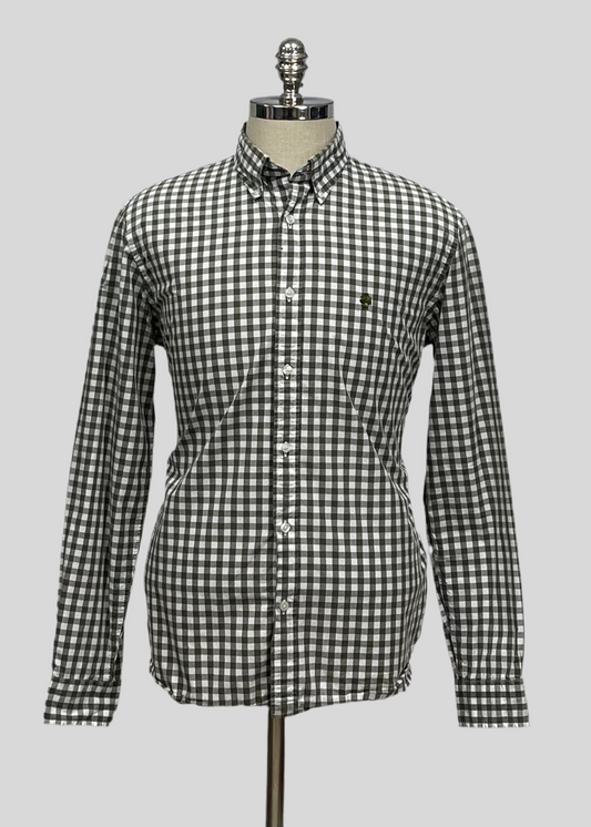 Camisa Brooks Brothers 🐑 con patron de cuadros gingham en verde oliva y blanco Talla L Entalle Regular (ver descripción)
