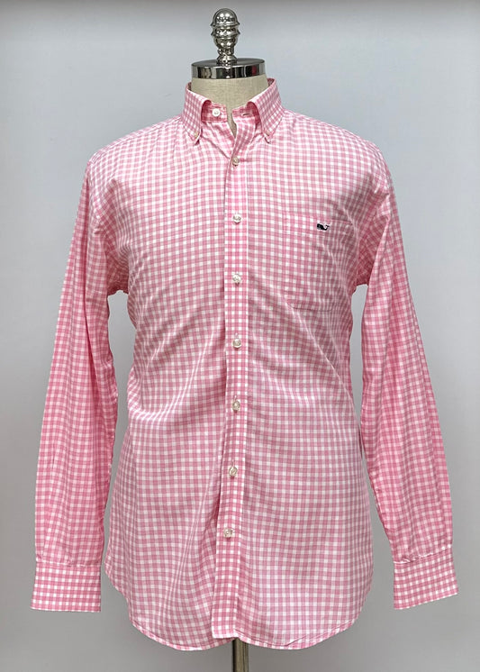 Camisa de botones Vineyard Vines 🐳 de cuadros gingham en color rosado y blanco Talla L Entalle Slim Fit (ver descripción)