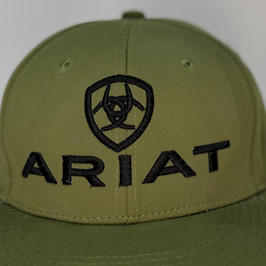 Gorra plana Ariat 🐂 color verde militar y logo bordado en color negro (ver descripción)