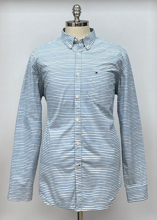 Camisa de botones Tommy Hilfiger 🇺🇸 en color blanco con rayas en color azul Talla XL Entalle Slim Fit (ver descripción)