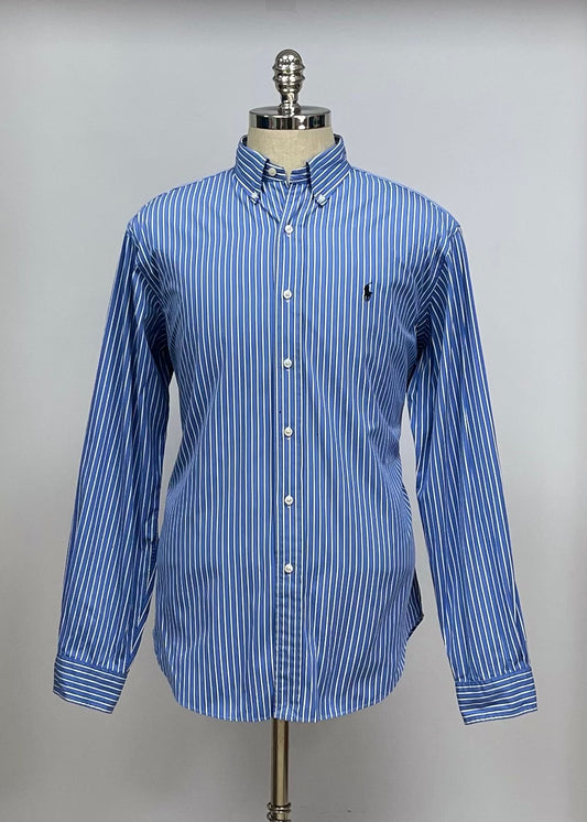 Camisa Polo Ralph Lauren 🏇🏼 con patron de rayas en color azul y blanco Talla L Entalle Clásico (ver descripción)