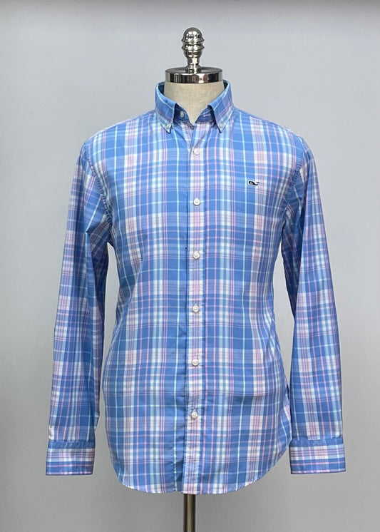 Camisa de botones Vineyard Vines 🐳 Performance con patrón de rayas en color azul, rosado y blanco Talla M Entalle Regular (ver descripción)
