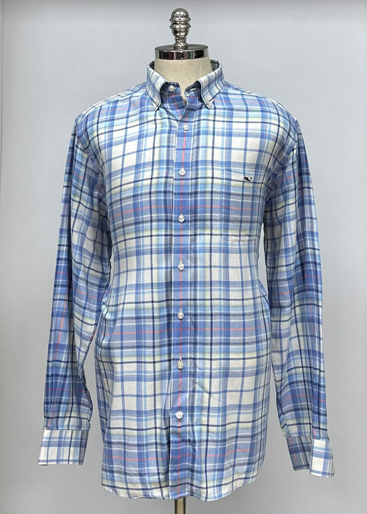 Camisa Vineyard Vines 🐳 color blanco con cuadros en color azul, celeste y verde Talla XL Entalle Slim Fit (ver descripción)