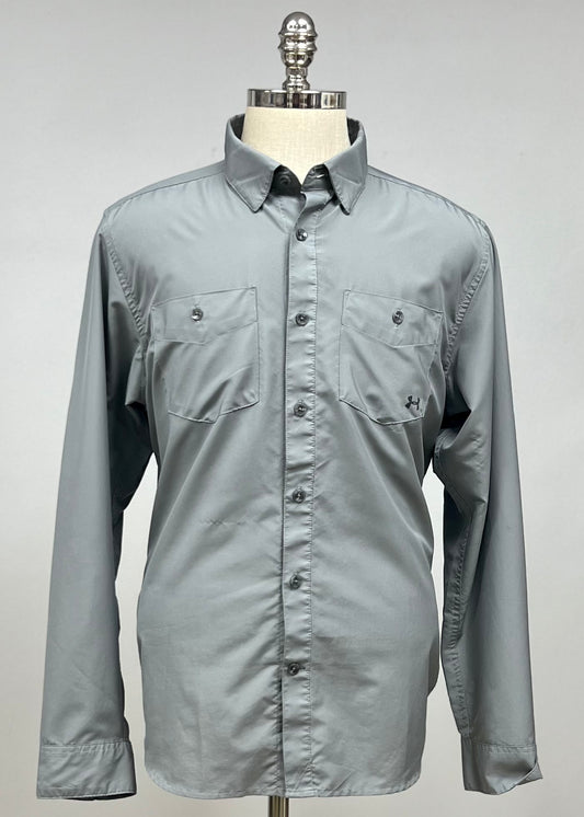 Camisa Under Armour 🏋🏽 color gris claro Manga larga Talla L Entalle Regular (ver descripción)
