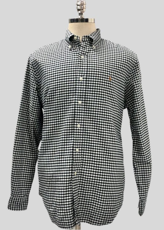 Camisa Polo Ralph Lauren 🏇🏼 de cuadros gingham negro y blanco Talla L Entalle Regular (ver descripción)