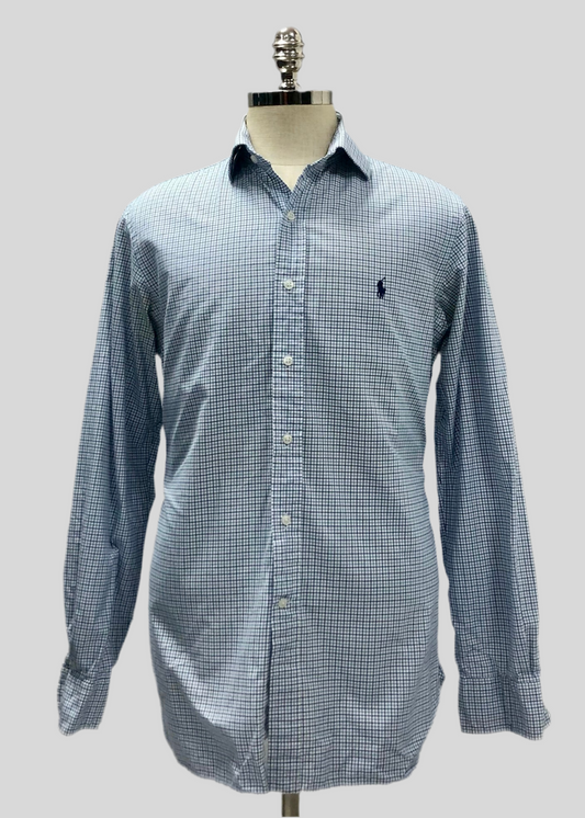 Camisa Polo Ralph Lauren 🏇🏼 con patrón de cuadros finos en celeste y blanco Talla XL Entalle Regular (ver descripción)