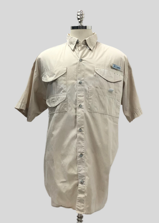 Camisa Columbia 🔹color Kaki claro con Omni Shade Manga corta Talla L (ver descripción)