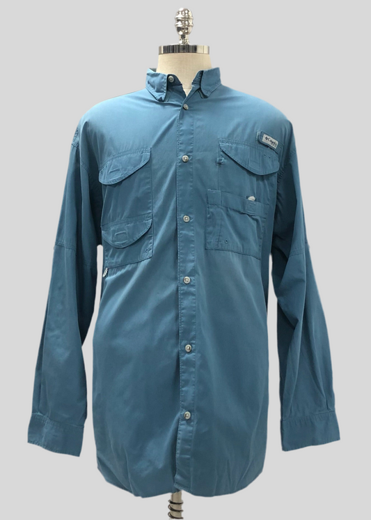 Camisa de botones Columbia 🔹color azul grisáceo con Omni Shade Manga larga Talla XL (ver descripción)