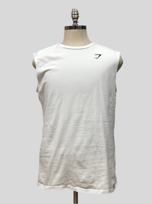 Camiseta de entrenamiento sin mangas Gymshark 🏋🏽 color blanco y logo en negro Talla XL (ver descripción)