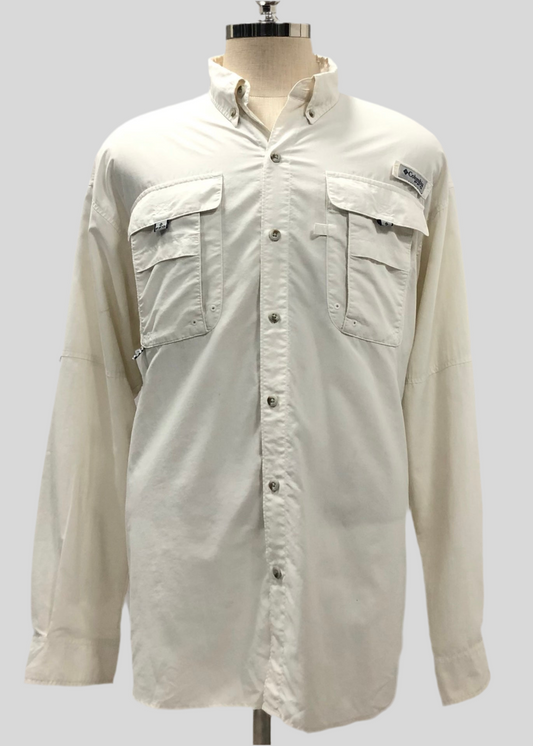 Camisa de botones Columbia 🔹color blanco con Omni Shade Manga larga Talla XL (ver descripción)