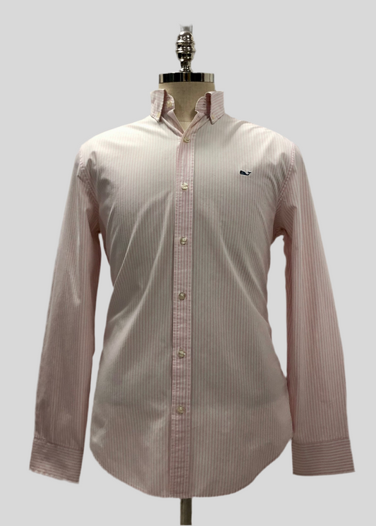 Camisa de botones Vineyard Vines 🐳 con patrón de rayas en color rosado claro y blanco Talla M Entalle Regular (ver descripción)