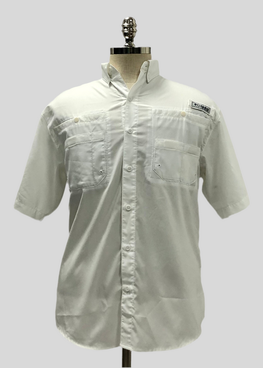 Camisa Columbia 🔹color Blanco con Omni Shade Manga corta Talla S (ver descripción)