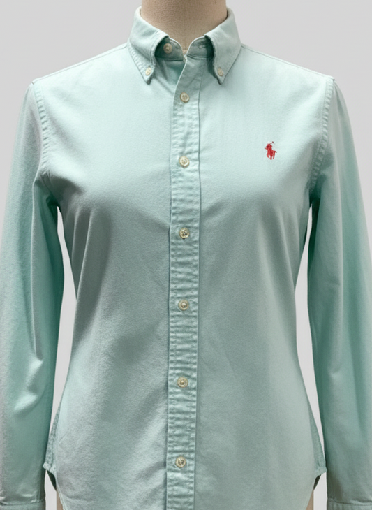 Camisa de mujer Polo Ralph Lauren 🏇🏼 Oxford con diseño tie-dye en turquesa y blanco Talla L Entalle Relaxed