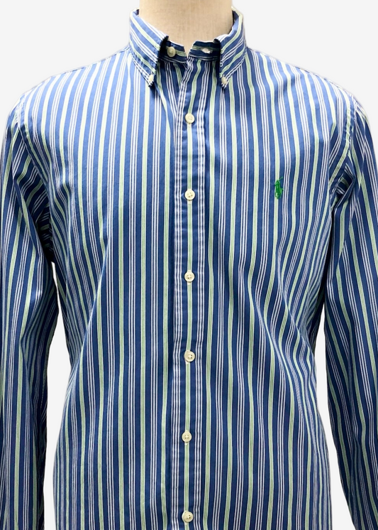 Camisa de botones Polo Ralph Lauren 🏇🏼 con patron de rayas en color azul, verde y blanco Talla L Entalle Regular