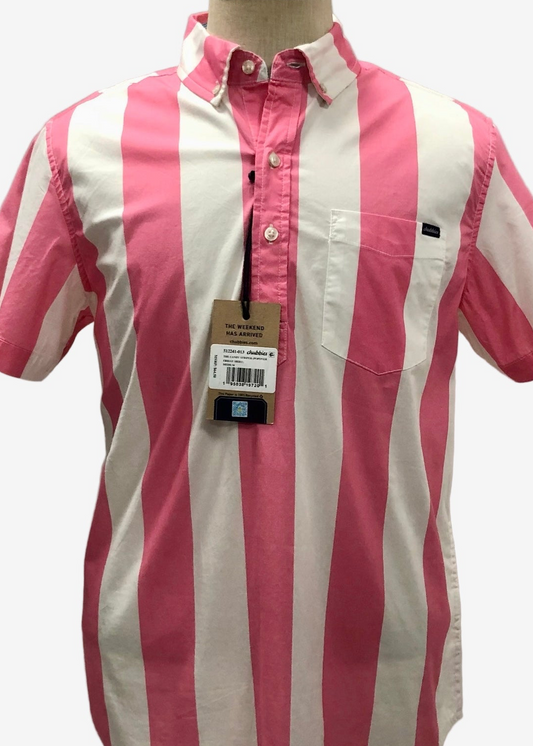 Camisa de botones Chubbies 🌴 De rayas en color rosado y blanco manga corta Talla M Entalle Regular