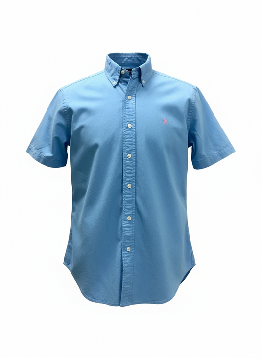 Camisa Polo Ralph Lauren 🏇🏼 Oxford con patron de cuadros tartán en color celeste, azul y rosado Talla S Entalle Regular