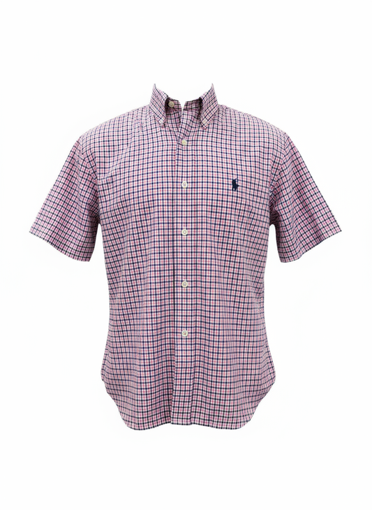 Camisa Polo Ralph Lauren 🏇🏼 con patrón de cuadros gingham rosado y blanco Talla M Entalle Clásico
