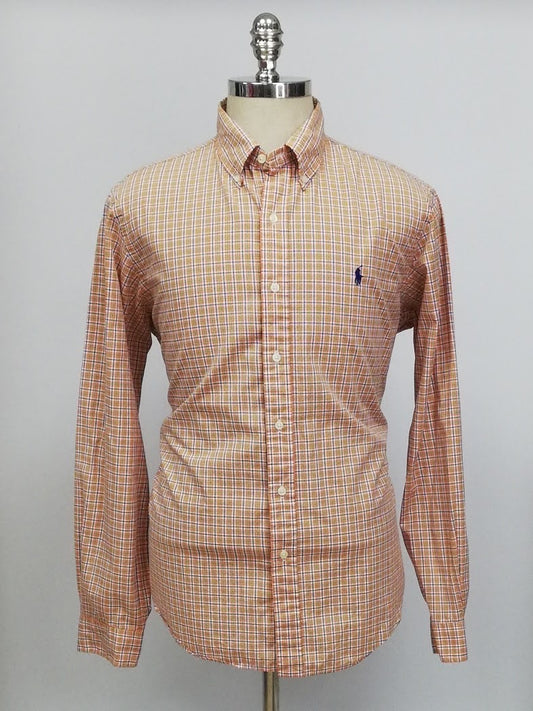 Camisa Polo Ralph Lauren 🏇🏼 con patron de cuadros gingham naranja y blanco Talla L Entalle Regular