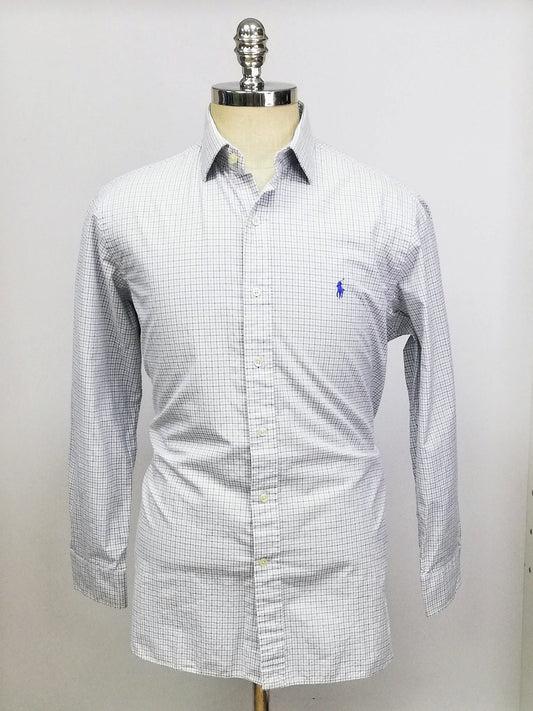 Camisa Polo Ralph Lauren 🏇🏼 color blanco con patron de cuadros en color azul y negro Talla L Entalle Regular