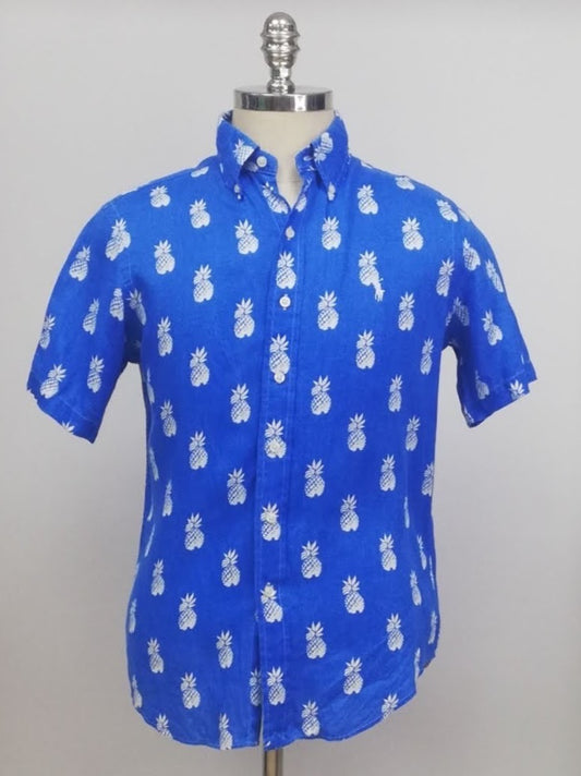 Camisa Polo Ralph Lauren 🏇🏼 de Lino en color azul con diseño de piñas en blanco Talla S Entalle Clásico