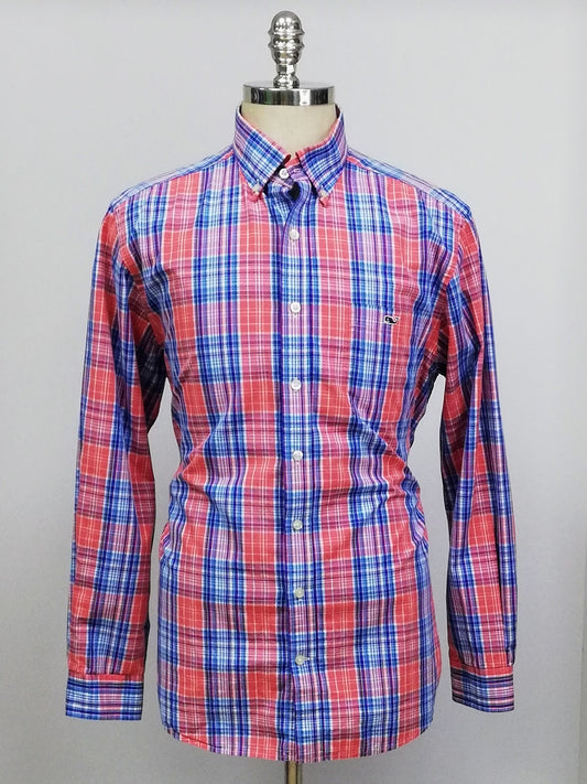Camisa de botones Vineyard Vines 🐳 con patrón de cuadros en color rojo, azul y blanco Talla L Entalle Slim Fit