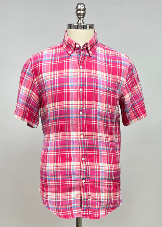Camisa de botones Vineyard Vines 🐳 De Lino con cuadros en color rojo, blanco y amarillo Talla L Entalle Slim Fit
