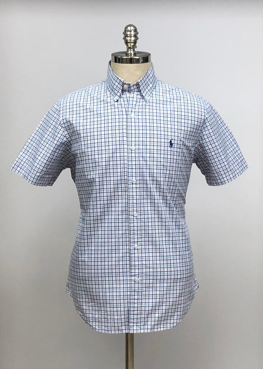 Camisa Polo Ralph Lauren 🏇🏼 Oxford blanca con patron de cuadros en color verde oscuro y azul Talla L Entalle Regular